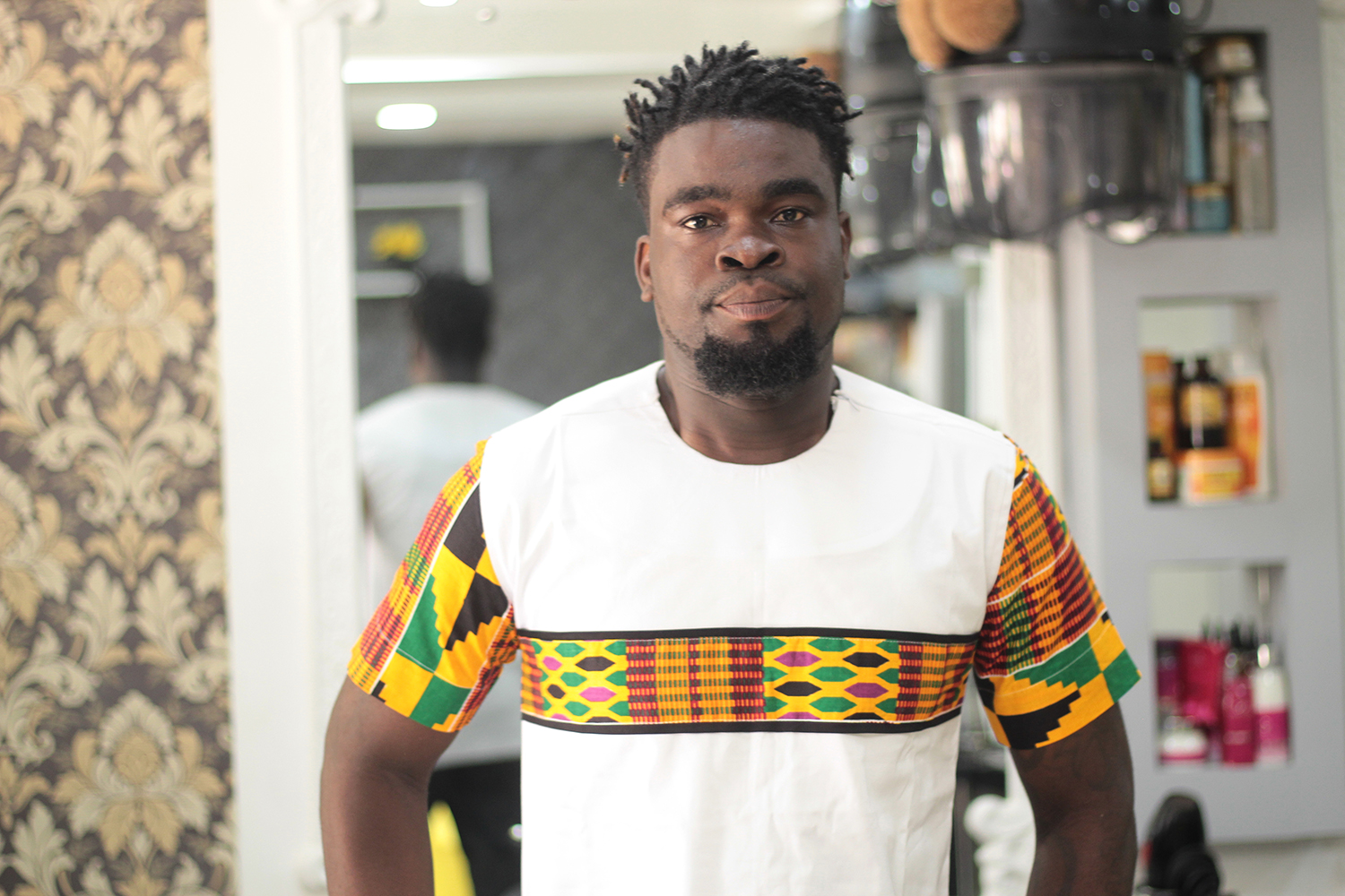 Customer notice: Attached kente fabric will be used for the sleeves and chest designs instead of the kente fabric used in the original listing.