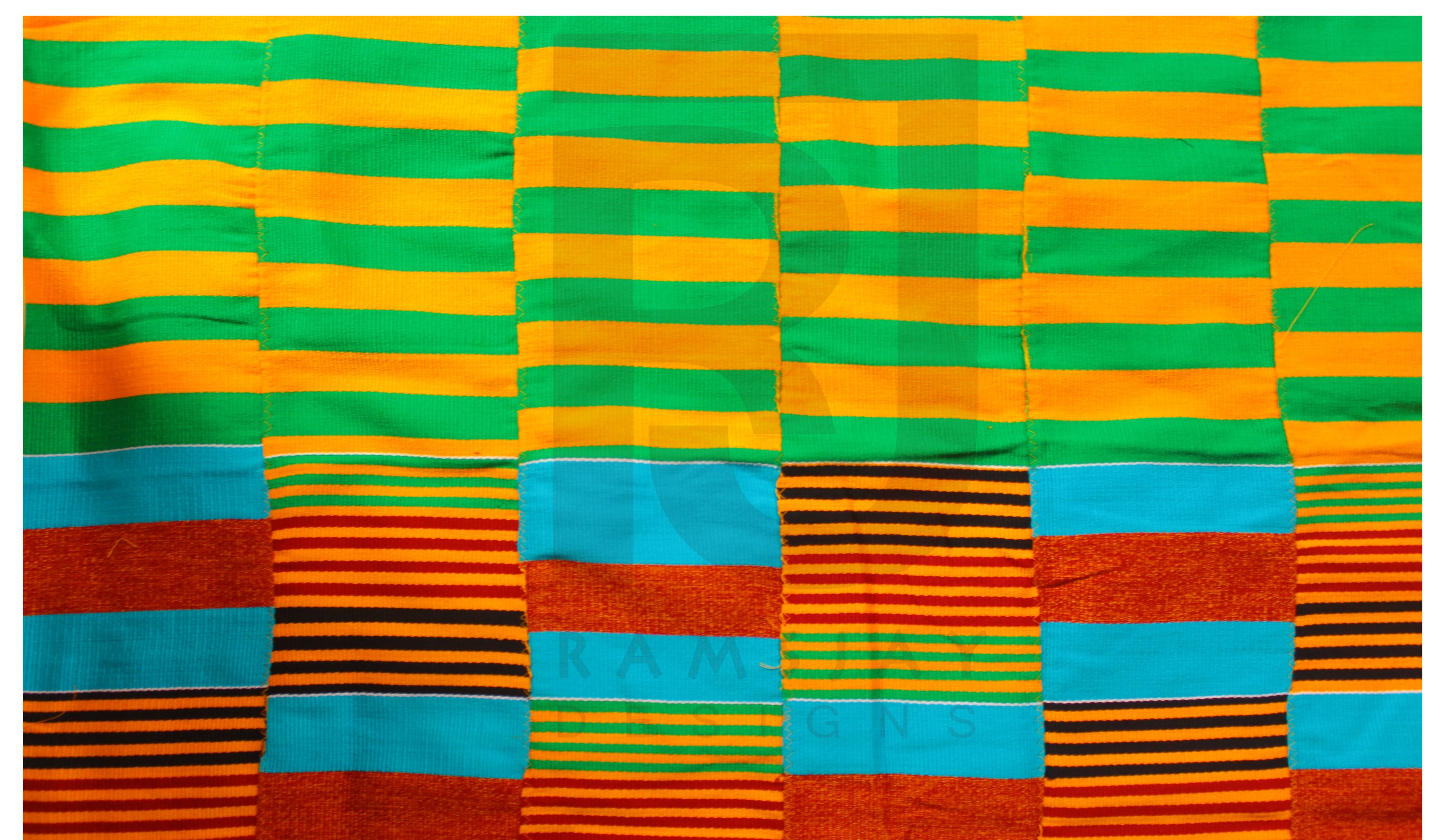 Babadua is the local name for this beautiful multicoloured100% Handwoven kente. The name babadua signifies Strength,Toughness,Resiliency,Power and Superiority. This Kente got its name from the babadua tree, which is a strong tree used for building fences, thatch roof frames, barricades during war in the past because it was particularly strong and resilient.