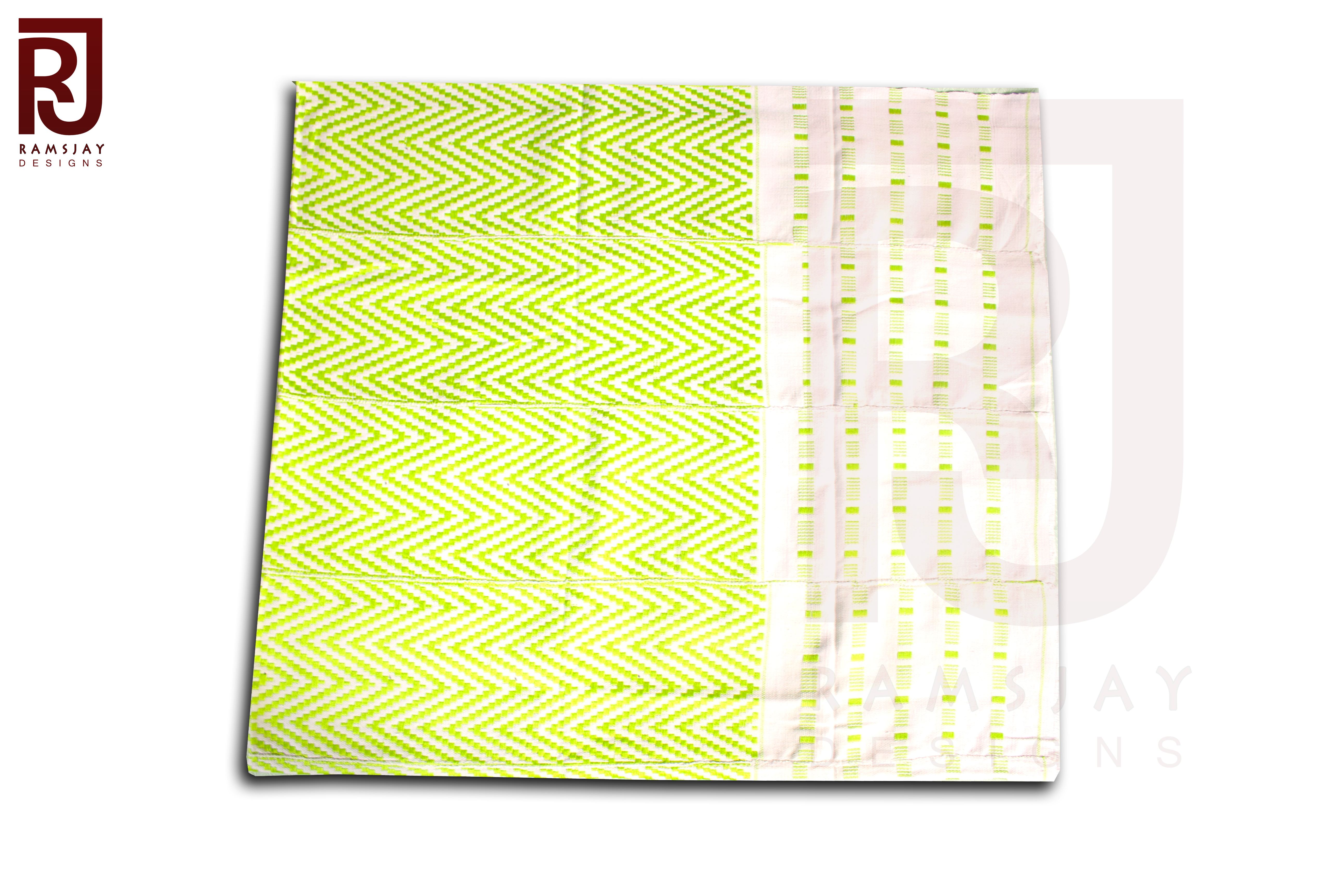Lemon Green &White 100% Handwoven Kente Cloth Kente Bonwire Kente Fabric 6 yards
