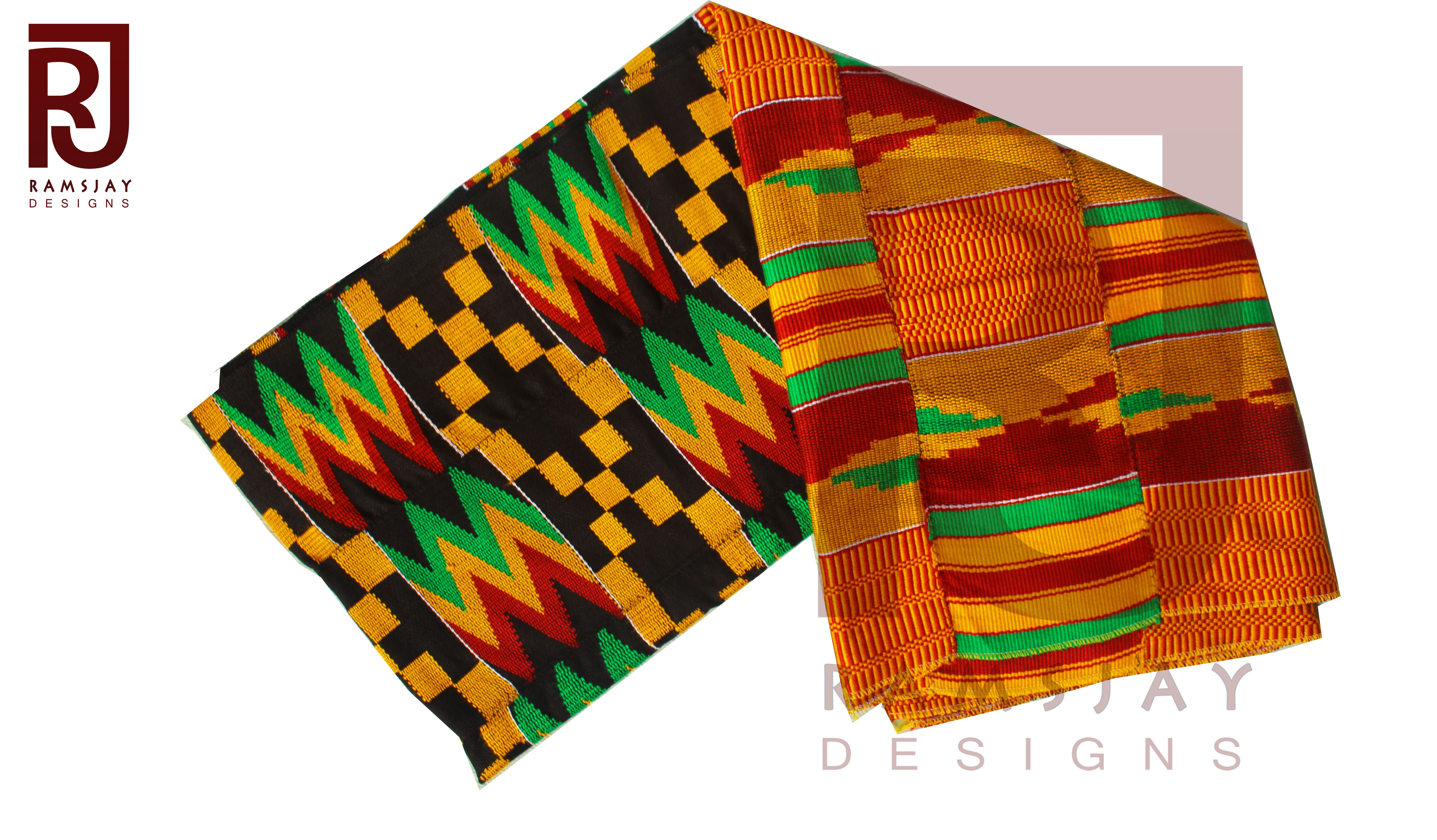 Kente cloth which is a type of silk and cotton fabric made of interwoven cloth strips is the royal and sacred cloth of the Ashantis in the Republic of Ghana. It is a unisex adult cloth and worn in times of extreme importance. The men's cloth is larger than that of the women. This prestigious cloth is worn during important functions like Engagements, Weddings, Church service, Graduations and any other important event.