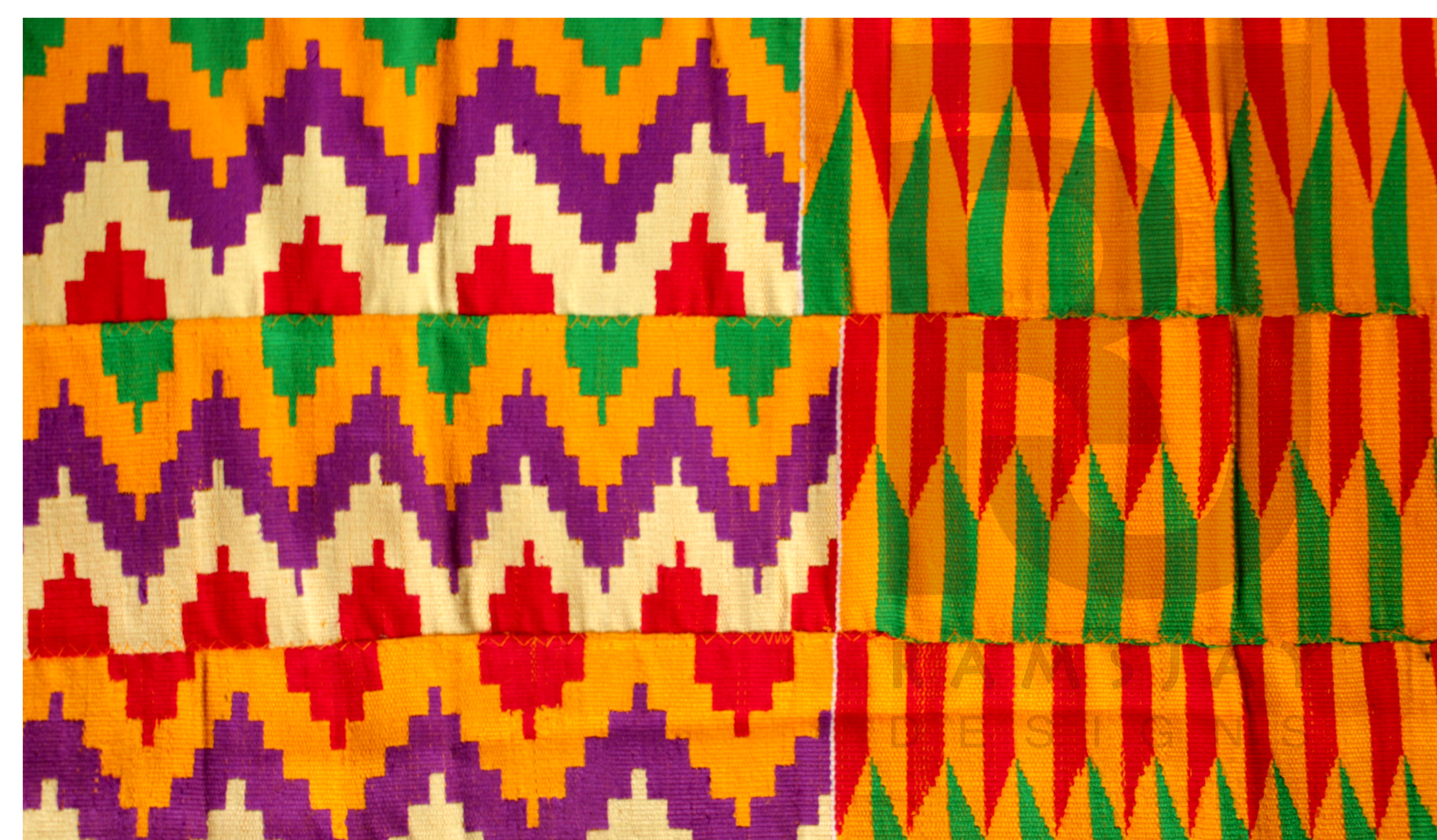 The icon of African cultural heritage, Asante kente is well noted for its dazzling, multicolored patterns of vibrant colours, geometric shapes and bold designs. It is the best known of all African textiles. The names of the cloth are derived from several sources including important historical events, proverbs, important chiefs, queen mothers and plants.