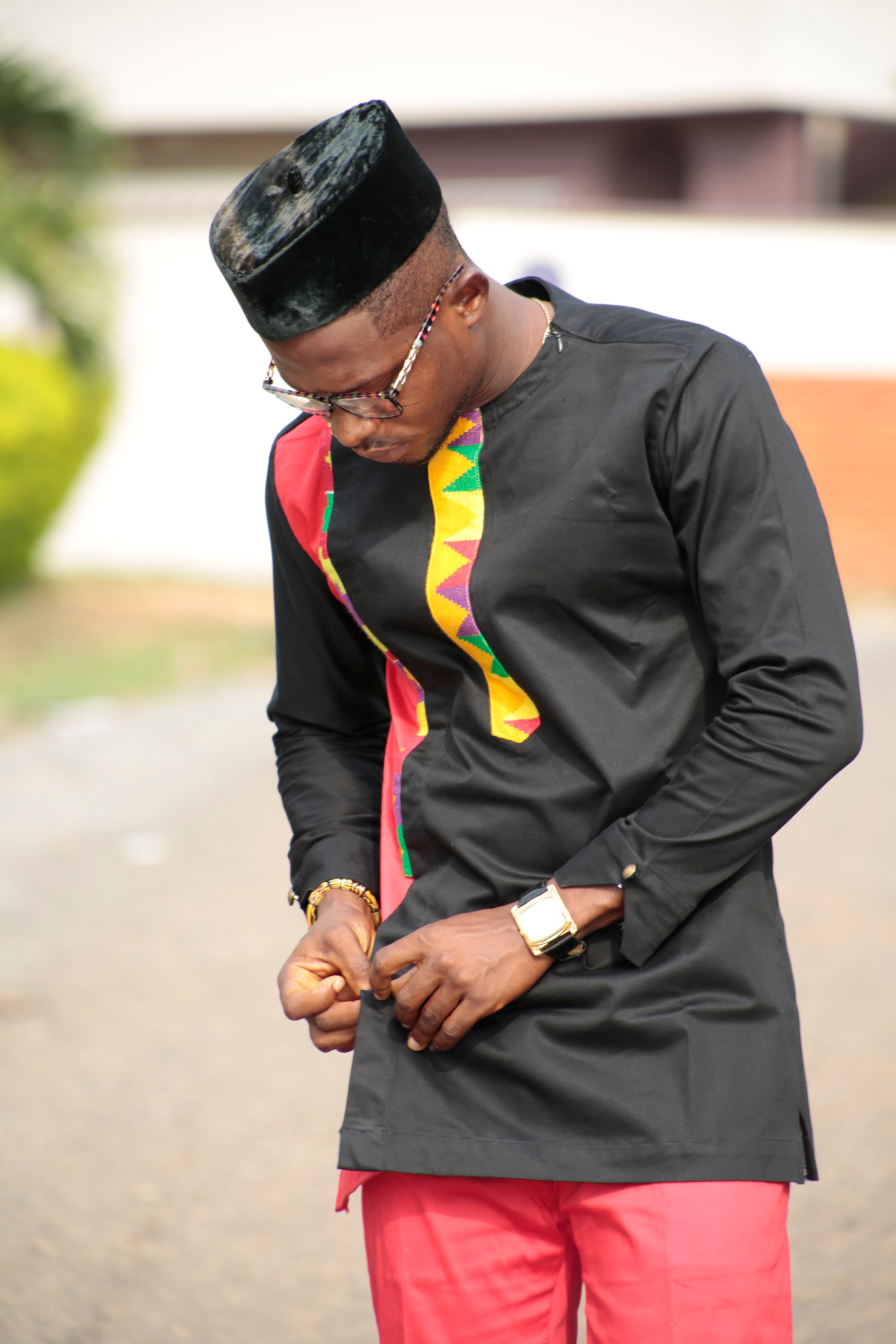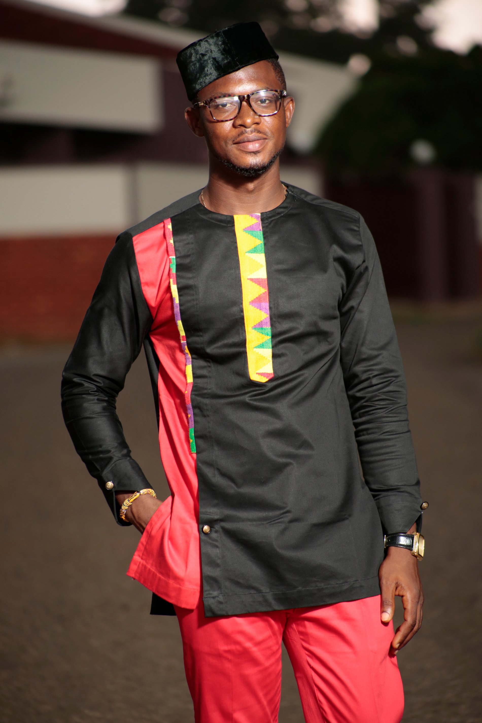 Kente & Black cotton Men's African Clothing Men's Fashion African Men's wear