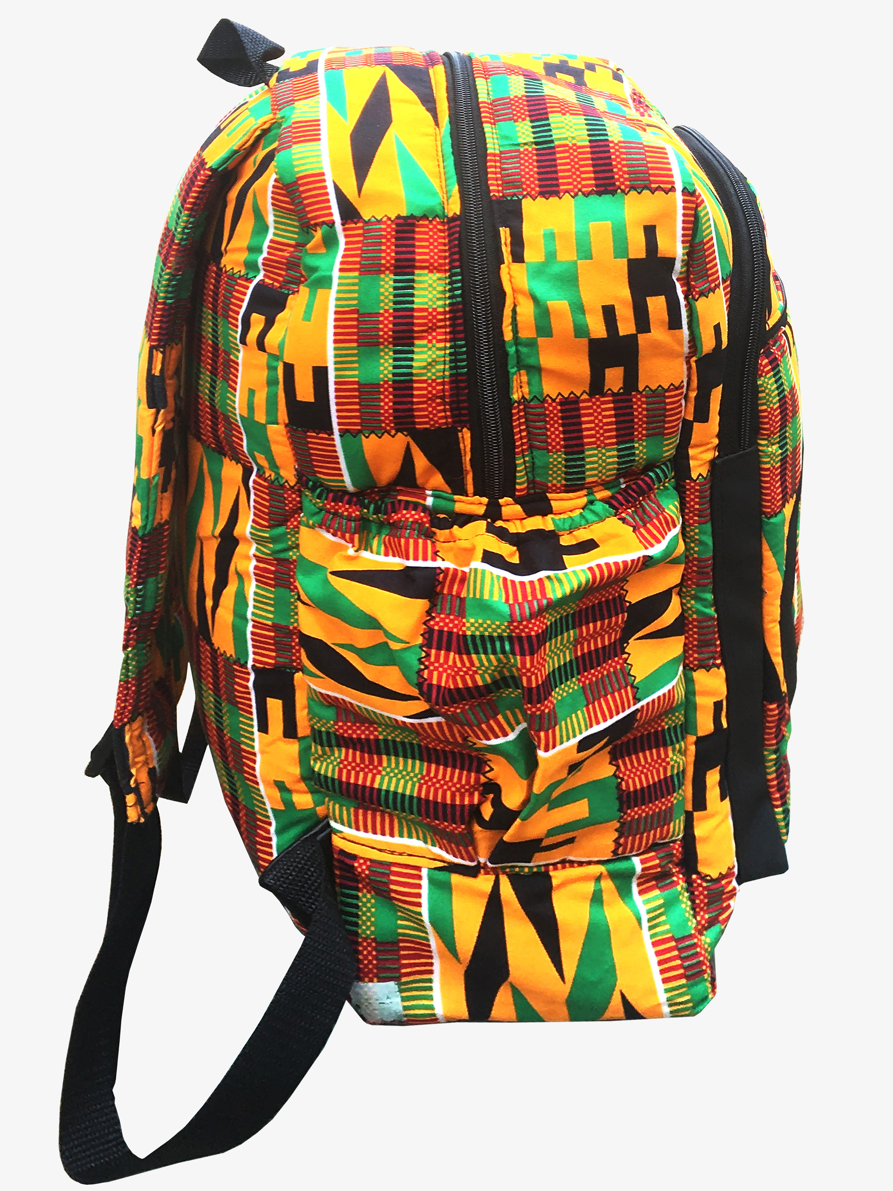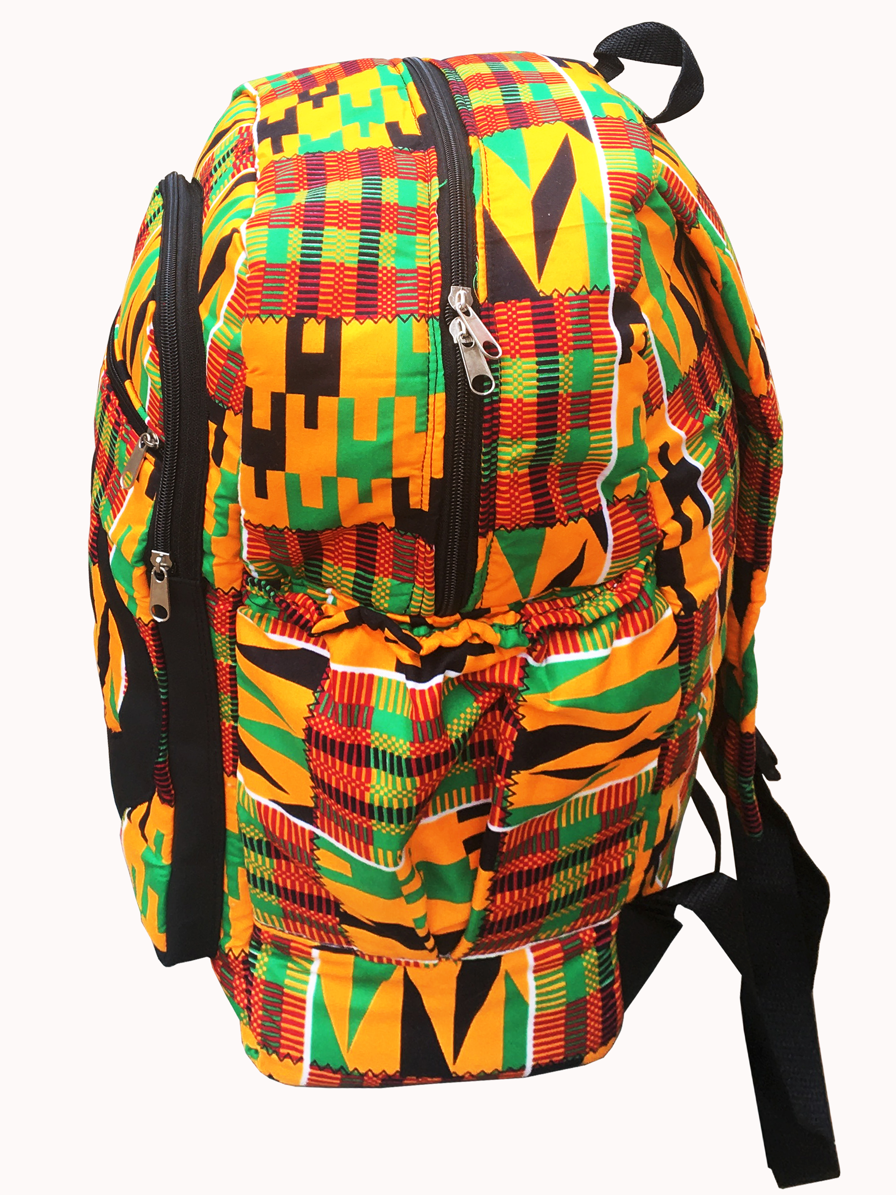 This is a beautiful quality handmade backpack made from quilted African kente fabrics. It is cute and has enough space for your books, handouts, laptop, tablets and other stuff. It is also a perfect bag for walkers and climbers.
