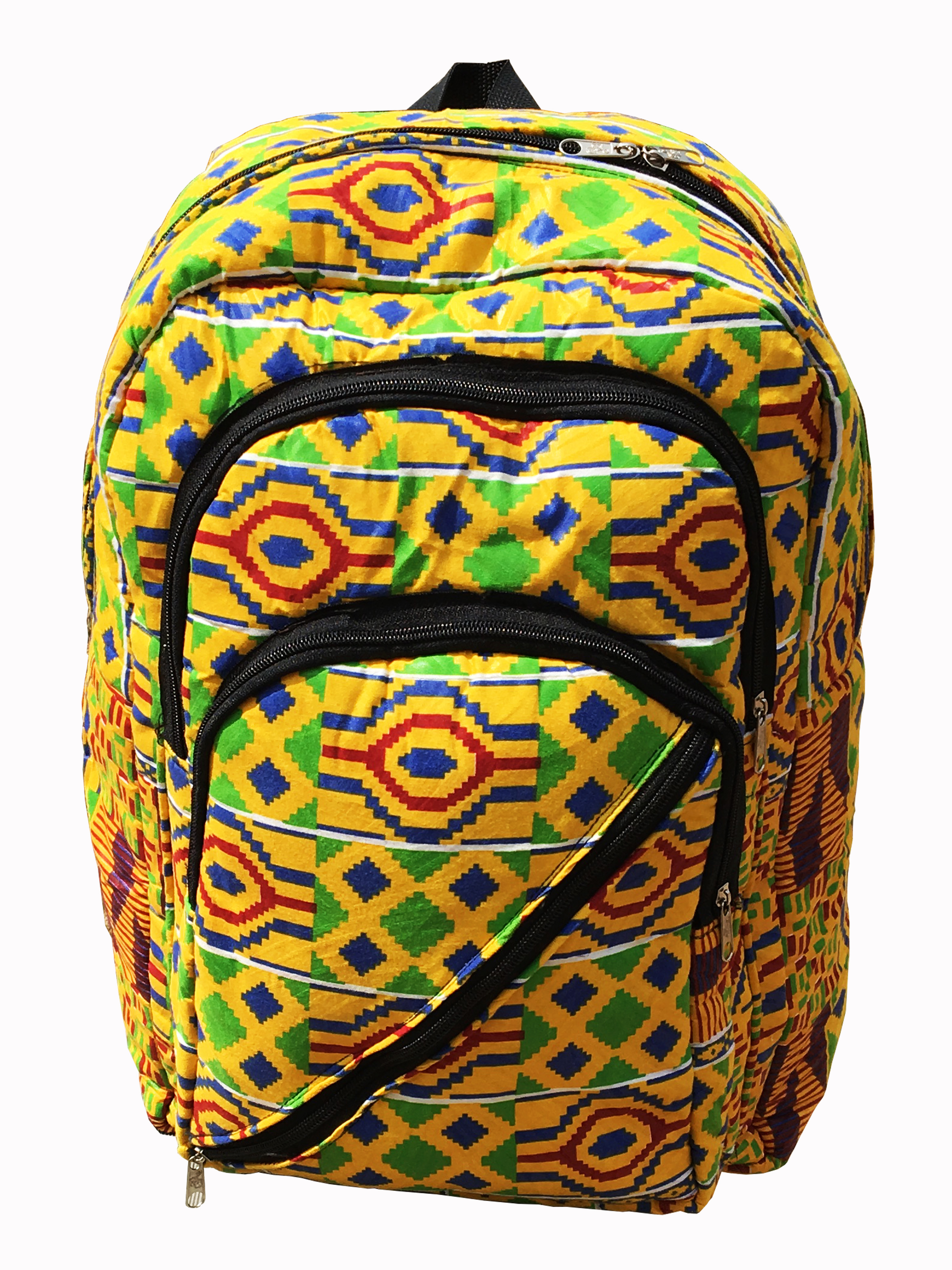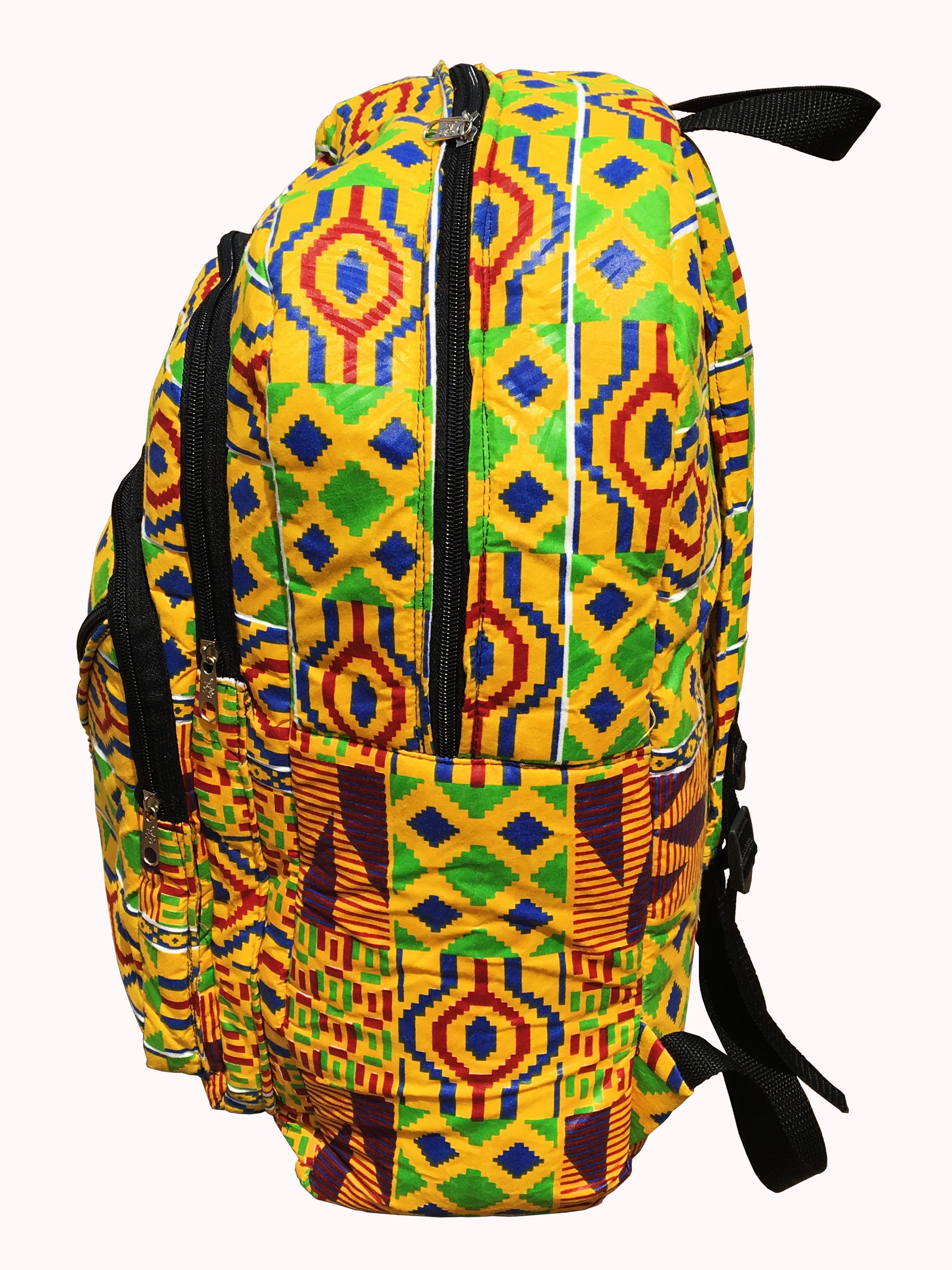 This is a beautiful quality handmade backpack made from quilted African kente fabrics. It is cute and has enough space for your books, handouts, laptop, tablets and other stuff. It is also a perfect bag for walkers and climbers.