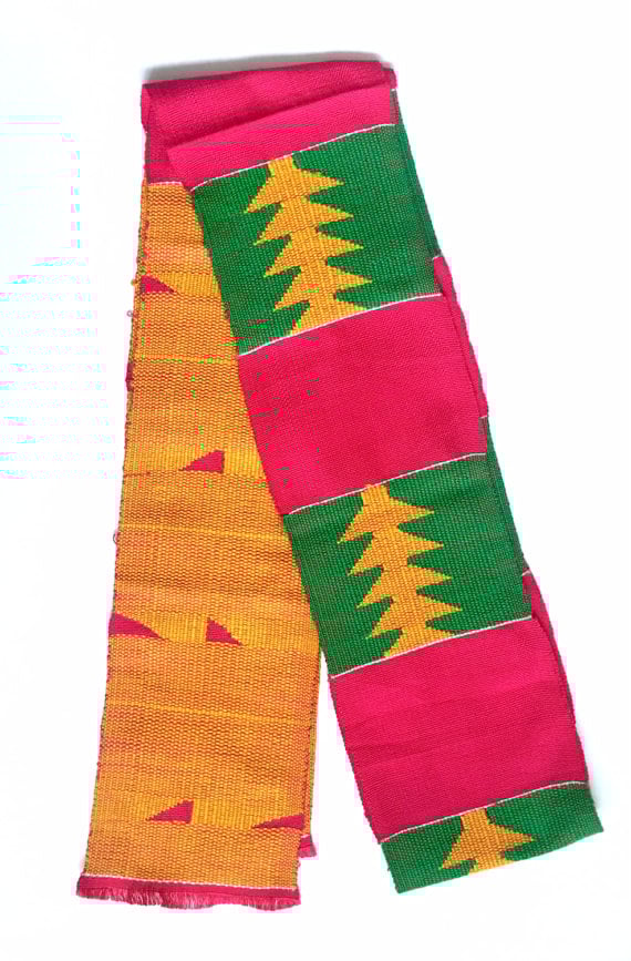 Asante Kente Scarf Handwoven School Sash Wedding Stole African Art Textile Cloth