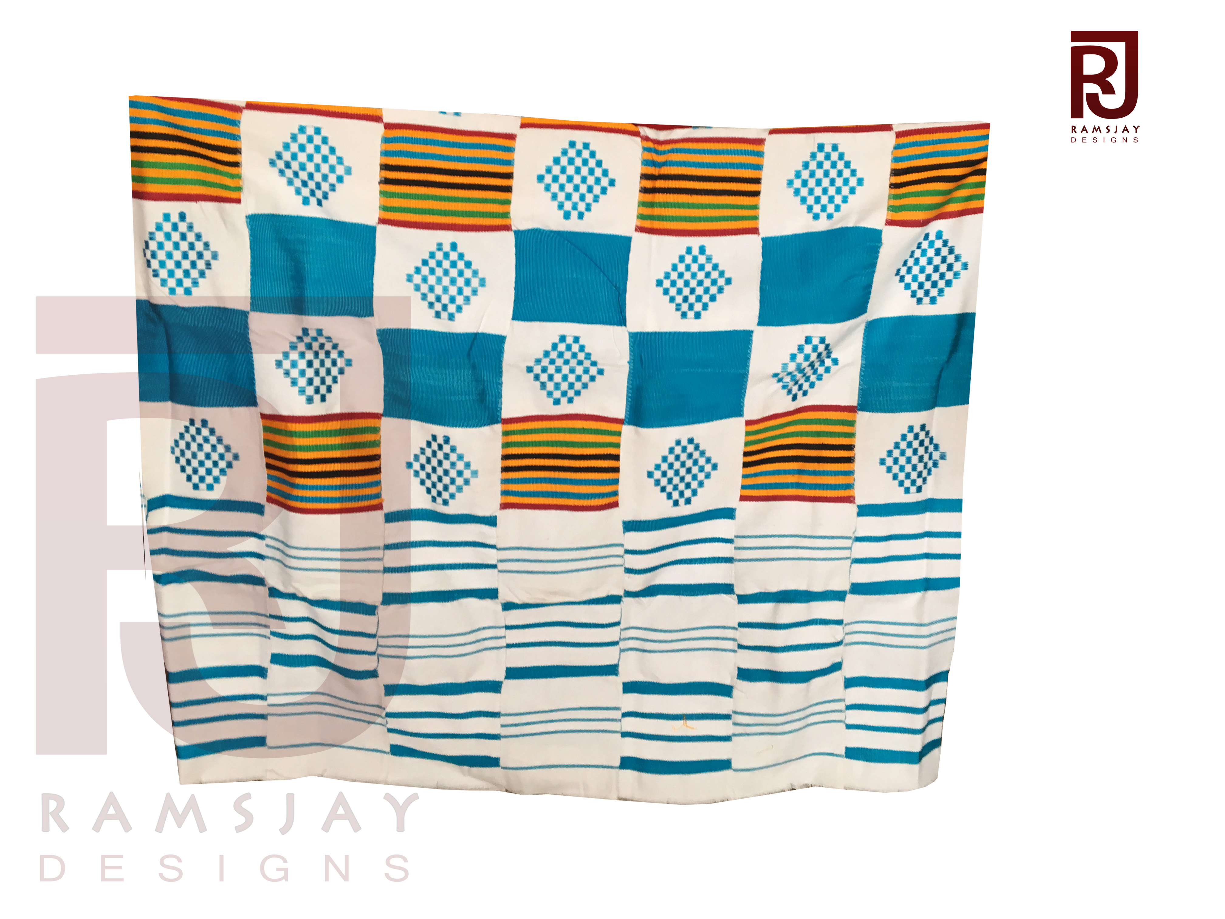 A beautifully woven traditional Kente cloth from Bonwire, Ghana. It is full of vibrant colors, 100% cotton, to suit every style! Kente cloth which is a type of silk and cotton fabric made of interwoven cloth strips is the royal and sacred cloth of the Ashantis in the Republic of Ghana. It is a unisex adult cloth and worn in times of extreme importance. The men's cloth is larger than that of the women. This prestigious cloth is worn during important functions like Engagements, Weddings, Graduations and any other important event.