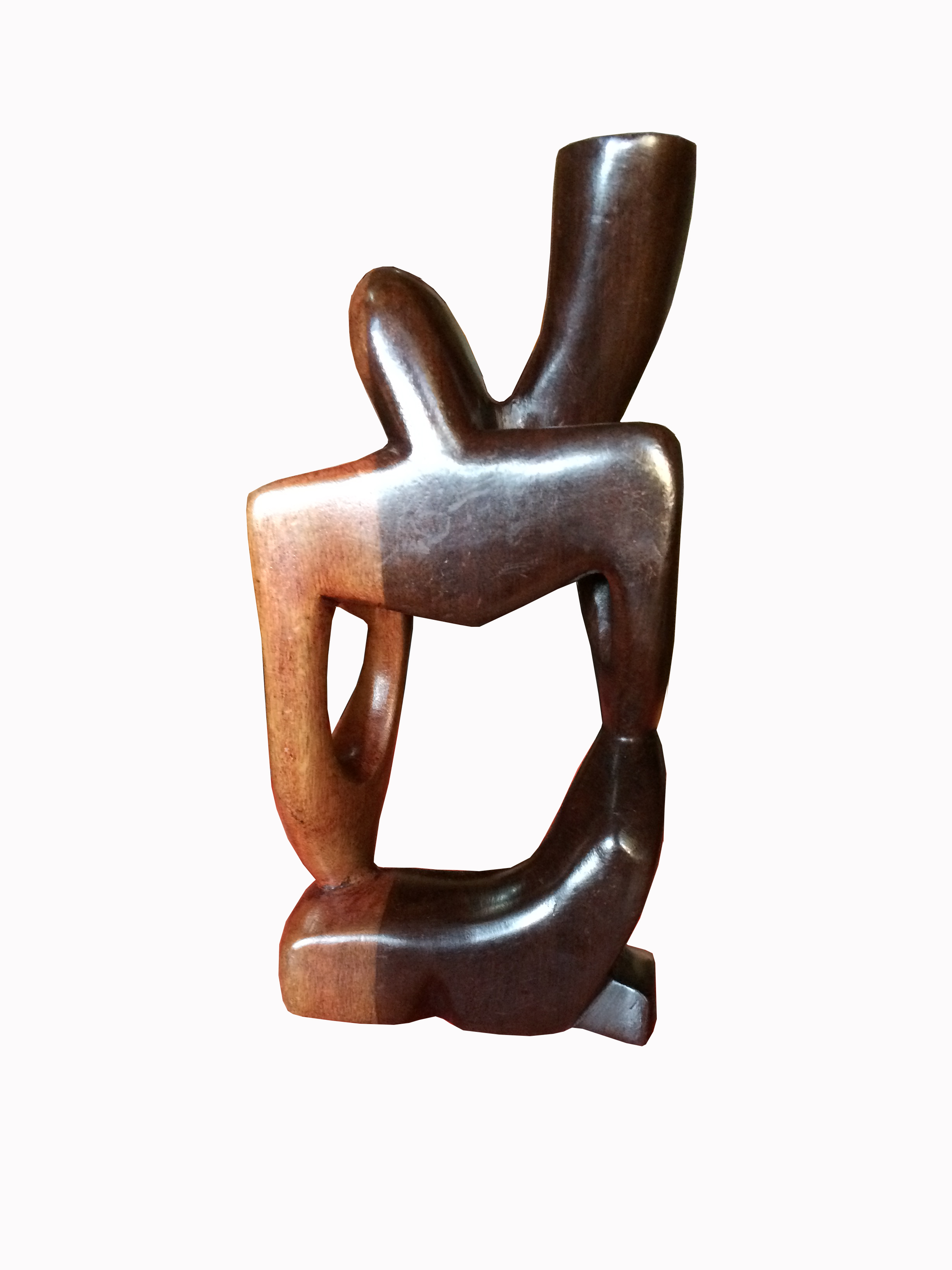 A vintage hand carved African Man Playing Horn, Ghanaian Traditional Sculpture from West Africa. This is a decorative art figure for your home.