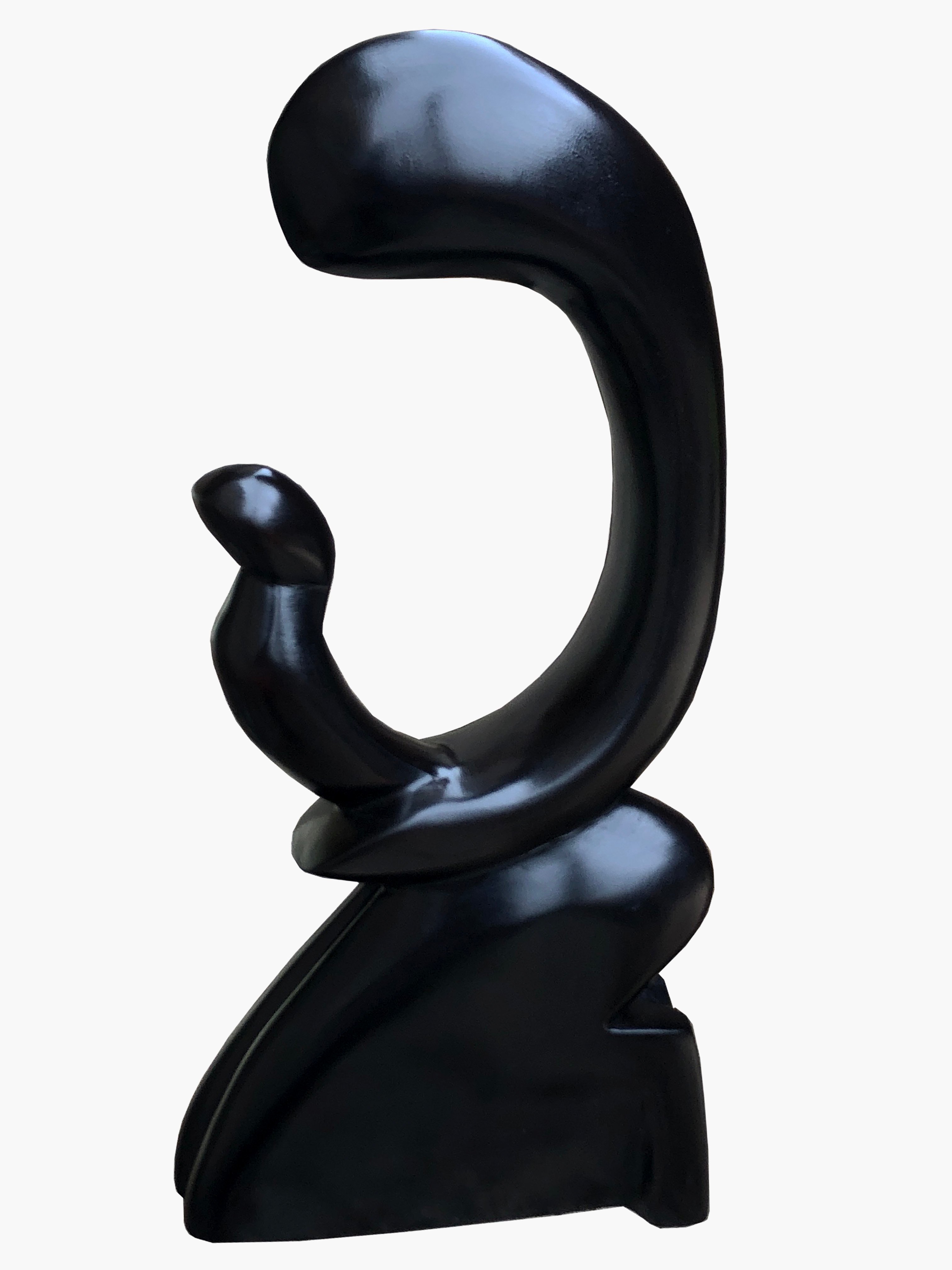 Vintage hand carved tribal African mother holding her child, Ghanaian traditional art figure. An African art figure depicting a mother's love for her child.